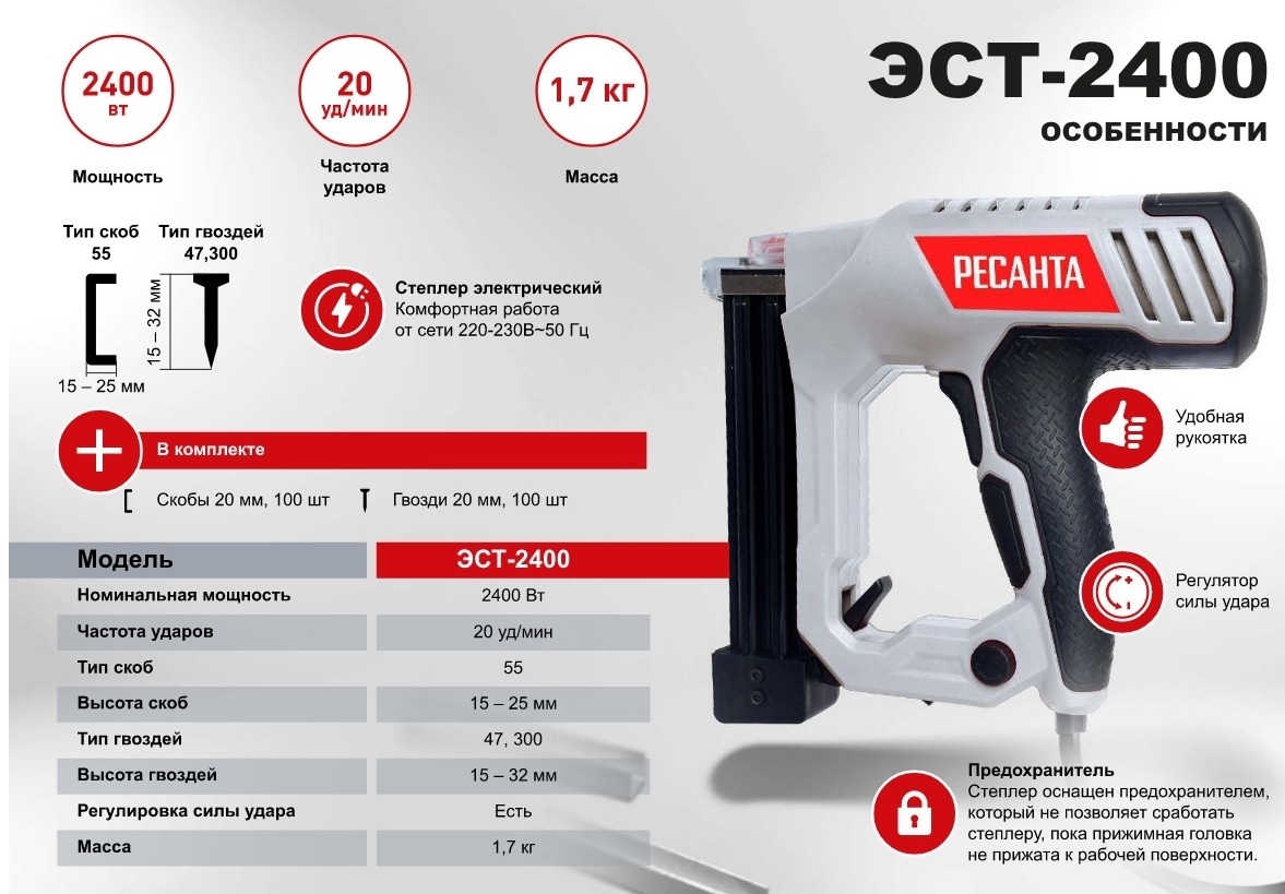 Степлер Ресанта ЭСТ-2400 — эталон качества для профессионалов. Доверьтесь инструменту, который превращает рутину в искусство, а каждый проект — в повод для гордости!