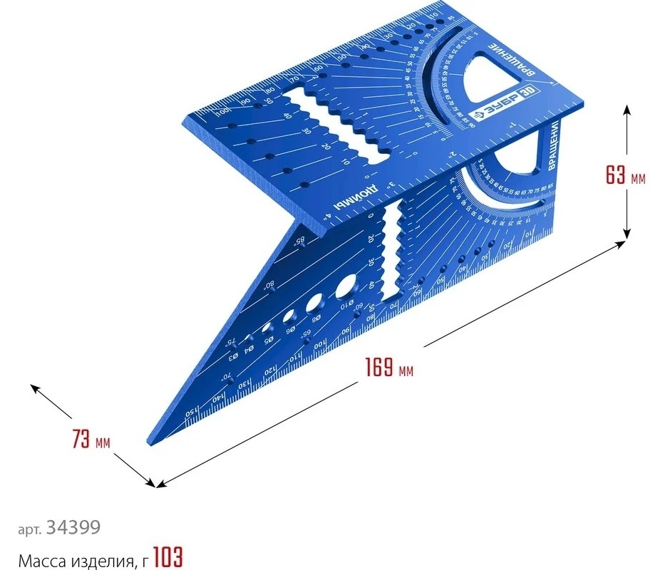 Угольник строительный Зубр Кровельщик кровельный универсальный, алюминиевый, синий, размером 180х180мм / инструментыАрт. 324В наличии1 190 ₽/шт