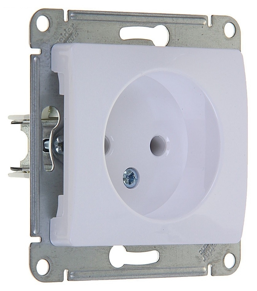 Розетка Schneider Electric / Шнайдер GLOSSA GSL000141 1-местная, без заземления, без защитных шторок, из пластика, цвет белый, 71×71×37мм, 16А, IP20