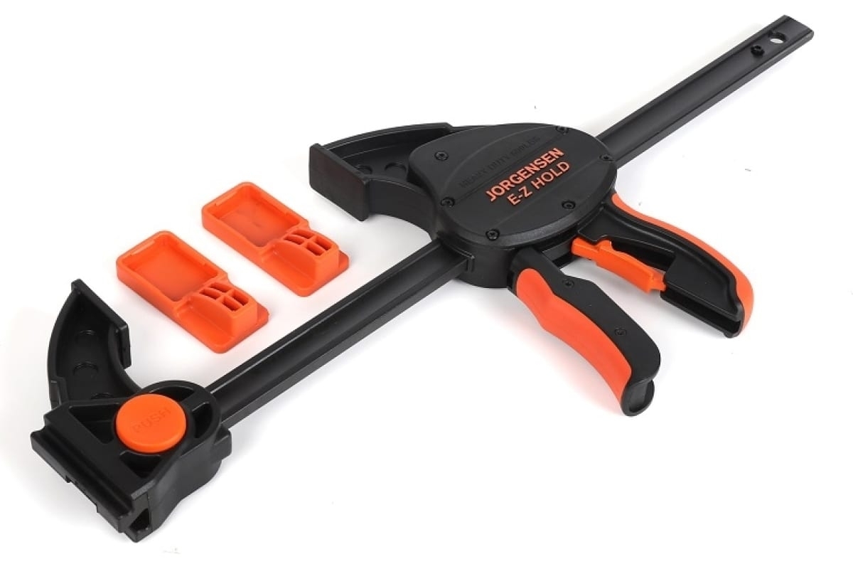 Струбцины Jorgensen E-Z HOLD Heavy Duty для тяжелых условий эксплуатации обладают всеми замечательными характеристиками зажимов E-Z HOLD для средних и легких нагрузок, но они имеют увеличенную глубину захвата и удвоенное усилие зажима — 270 килограмм! Изготовленные из прочных материалов, эти струбцины станут серьезными рабочими лошадками для серьезных столяров.