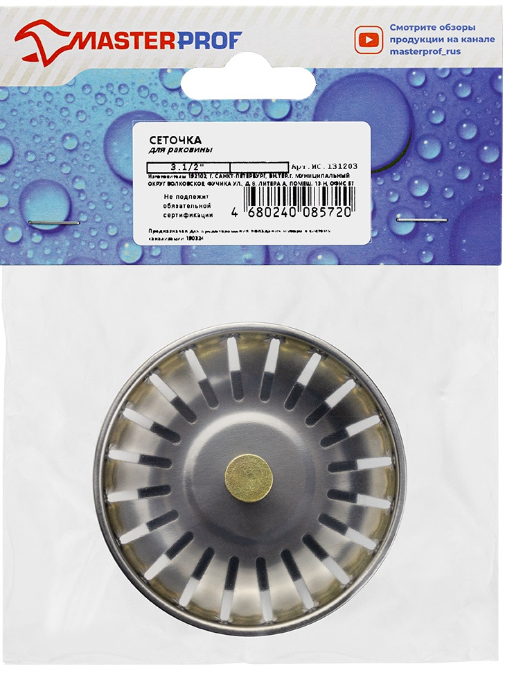Сетка для раковины Masterprof / Мастерпроф сменная, для слива, из нержавеющей стали, цвет серый, под выпуск 3.1/2дюйма / сантехника