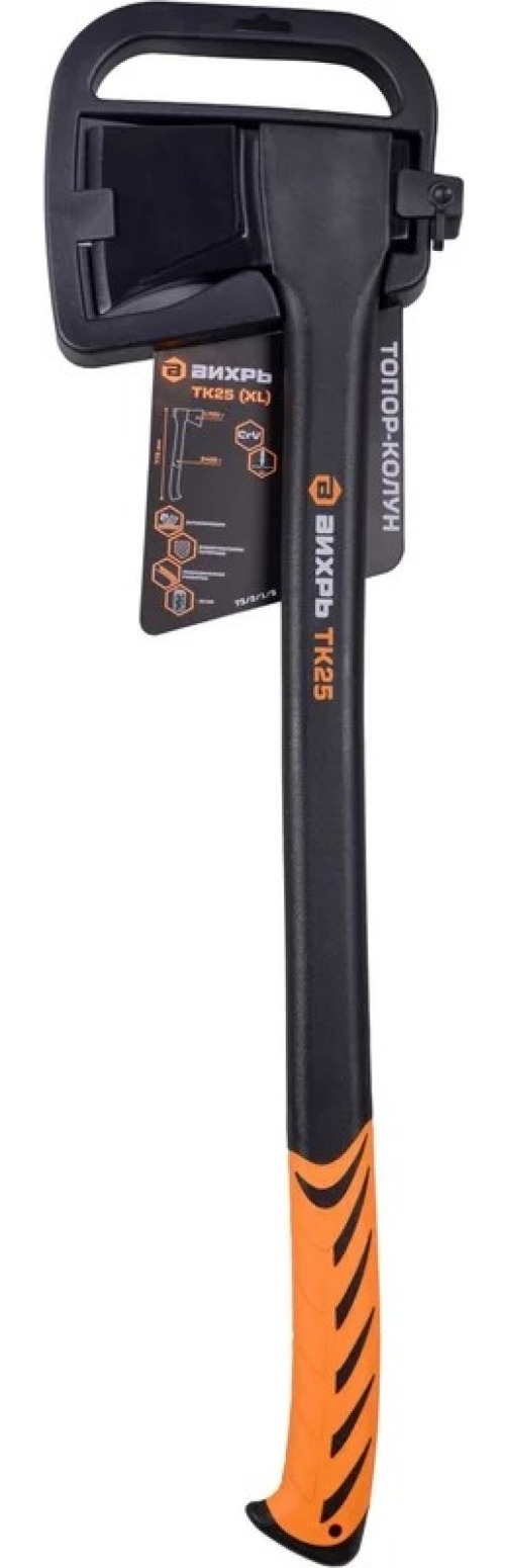 Топор-колун ВИХРЬ TК25 в сборе, с чехлом, из стали и фибергласса, длина 77.5см / ручной инструмент