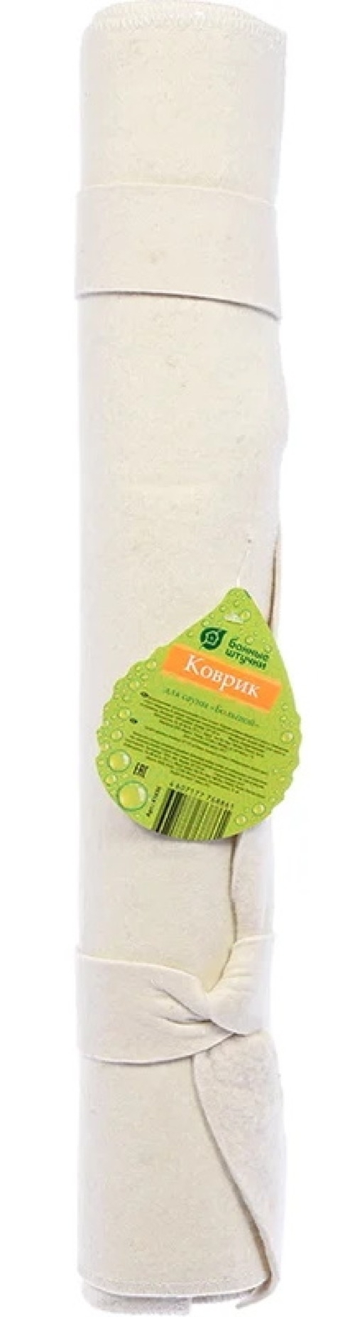 Коврик для бани Банные штучки изготовлен из мягкого войлока, который обеспечивает приятное прикосновение к коже и надежную теплоизоляцию от холодных поверхностей.