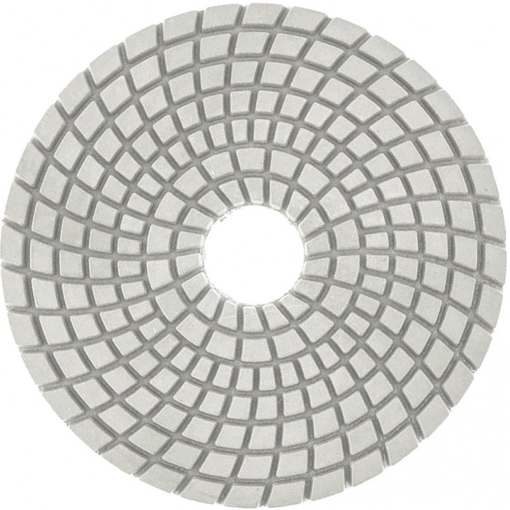 Алмазный гибкий шлифовальный круг Matrix 73510 диаметром 100 мм, с зернистостью P 400, предназначен для мокрого шлифования и используется при проведении строительных, отделочных и художественных работ. Абразив зернистостью P 400 позволяет проводить чистовую обработку, придавать гладкость гранитным, каменным, керамогранитным и мраморным поверхностям. Рабочая часть выполнена из белого термопластика с алмазным напылением и подходит для использования на цветных, преимущественно белых, материалах. Гибкая основа круга облегчает шлифовку рельефных элементов. Круг используется на УШМ с установленной опорной тарелкой для АГШК.