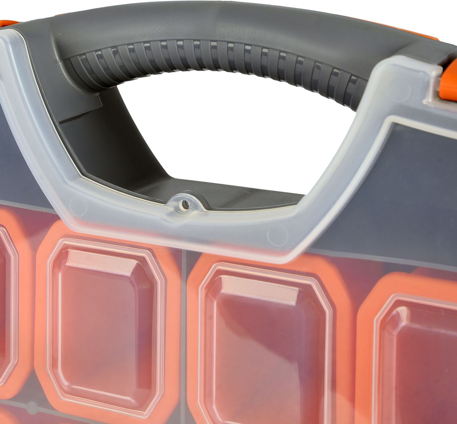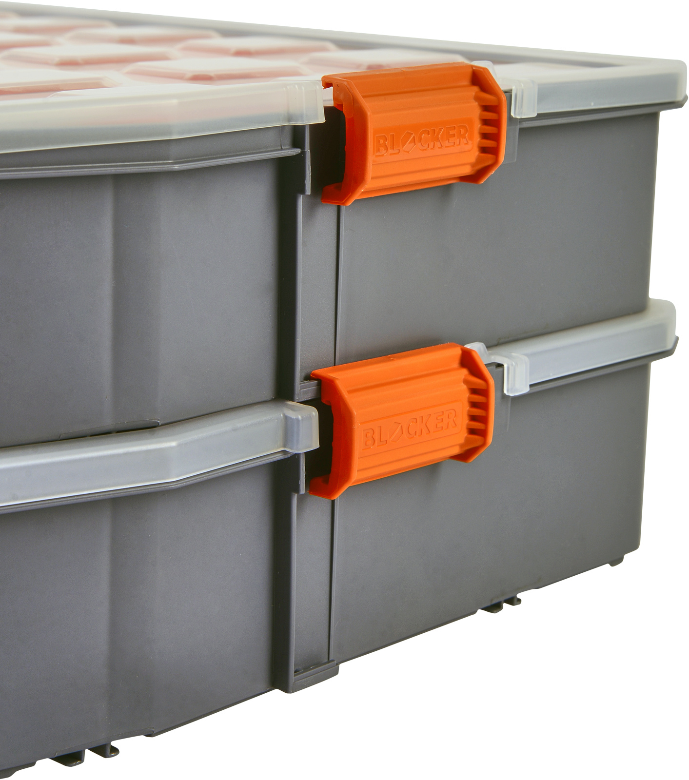 Надежные замки исключают возможность случайного открывания крышки и смешивания содержимого внутри органайзера. Боковые защелки не только надёжно фиксируют крышку, но и позволяют скреплять несколько аналогичных органайзеров между собой, создавая систему хранения.