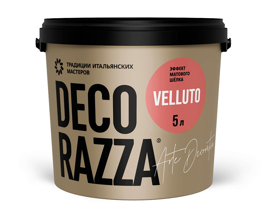 Декоративное покрытие Decorazza / Декорацца Velluto VT 001 с эффектом матового шелка, шелковисто-матовое, на акриловой основе, 5кг / лакокрасочные материалы