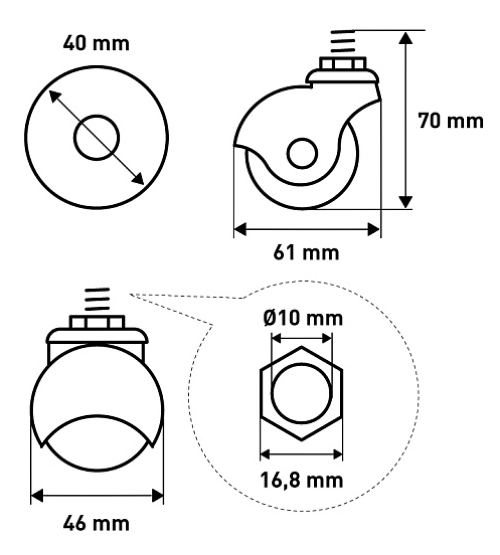 Колесо шар LBT-40 °C — мебельная фурнитура механического типа, выполняющая функцию подвижной опоры. Необходимо купить для придания мебельным изделиям локальной мобильности. Закрепляется в предварительно подготовленное резьбовое отверстие или втулку, которую можно вмонтировать в любой формообразующий материал (дерево, пластик, ДСП). Основной подвижный элемент — прорезиненное колесо, прикреплено через ось к металлическому корпусу с поворотной функцией. При установке и практическом использовании следует учитывать рабочую нагрузку, рекомендованную производителем.
