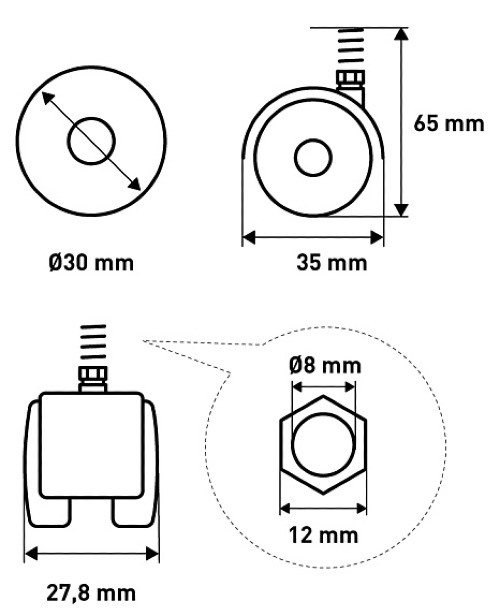 Колесо поворотное со стержнем с резьбой LWT8-30WH — стандартная опора для офисных кресел, журнальных столиков и тумбочек. Делает мебель мобильной и маневренной. Поворотный механизм позволяет передвигать ее в любом направлении. Колесо имеет диаметр 30 мм. Выдерживает нагрузку до 30 кг. Цвет — белый. Диаметр резьбы — М8. Гарантия от производителя — 2 года.