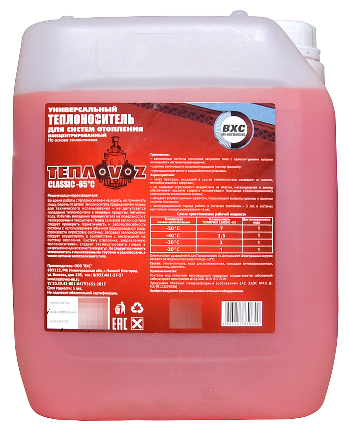Теплоноситель ТЕПЛОVOZ CLASSIC универсальный концентрированный, на основе этиленгликоля, 10кг / отопление