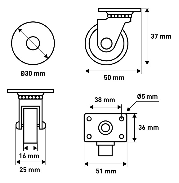 Колесо поворотное с площадкой LWPR-30GY — маневренная опора для мебели. Можно устанавливать на кресла, тумбы, журнальные столы и другую мебель небольшого размера, которую нужно часто передвигать. Поворотный механизм обеспечивает легкое движение в любом направлении.