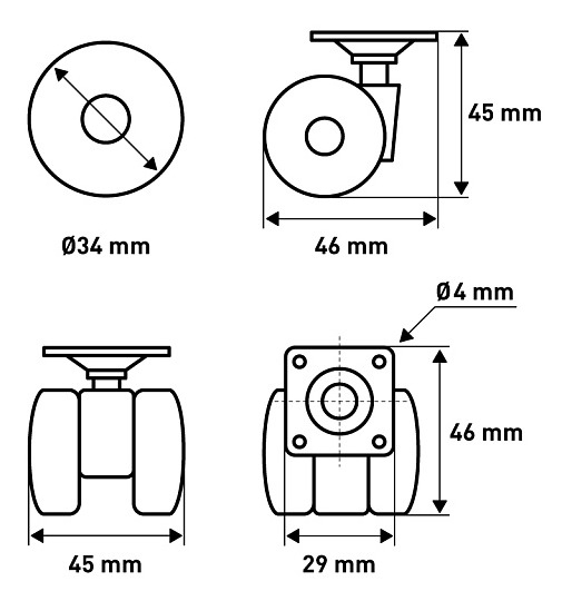 Колесо поворотное с площадкой LWP-34GY — опора для кресел, тумб, столиков и другой домашней и офисной мебели. Подвижное соединение колеса и площадки обеспечивает вращение на 360°. Колесо диаметром 34 мм выглядит миниатюрным и аккуратным. Рассчитано на нагрузку до 20 кг. Цвет — серый. Поворотная колесная опора позволяет легко перемещать мебель в любом направлении.