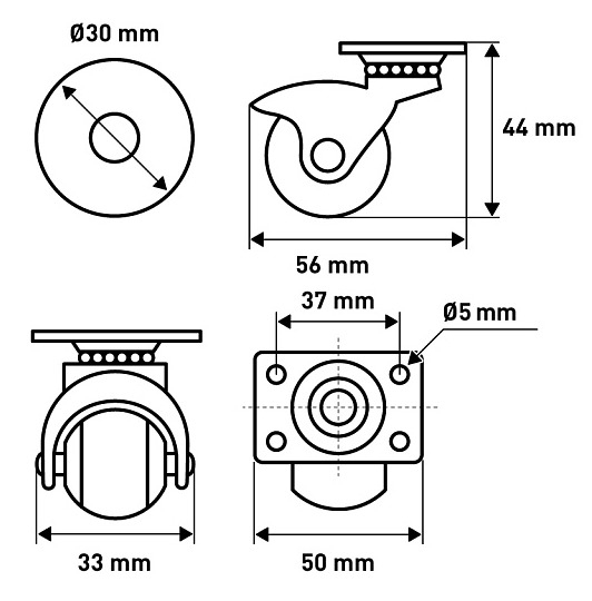 Мебельное колесо Larvij / Ларвидж LBP-30C поворотное, на платформе, резиновое, серое, диаметр 30мм / фурнитура