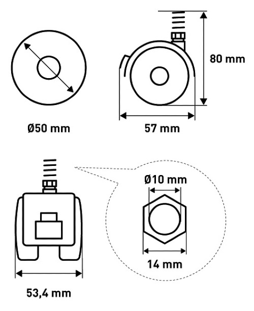 Поворотное колесо декоративного типа LZTB-50 обладает нестандартным дизайном и оснащается удобным тормозом. Отлично подходит для установки на столы, шкафы, мягкую мебель и т. д. Материалами его изготовления служат металл и черный полиамид, отличающийся хорошей износостойкостью.