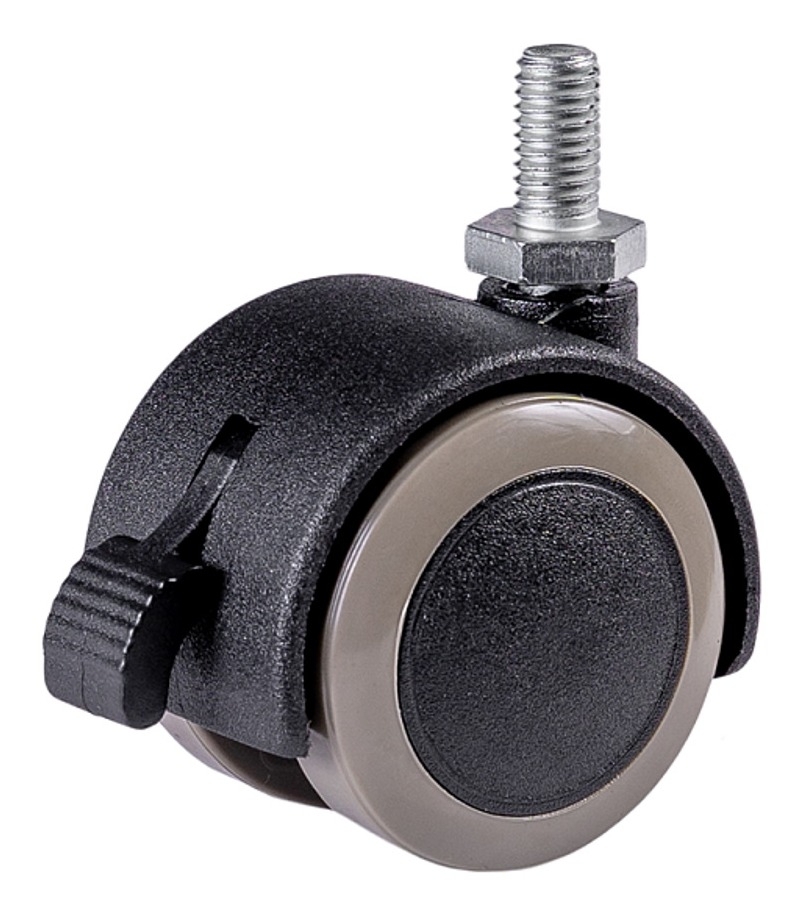 Мебельное колесо Larvij / Ларвидж LWTB-40GY двойное, поворотное, с тормозом, пластиковое, черное, диаметр 40мм / фурнитура