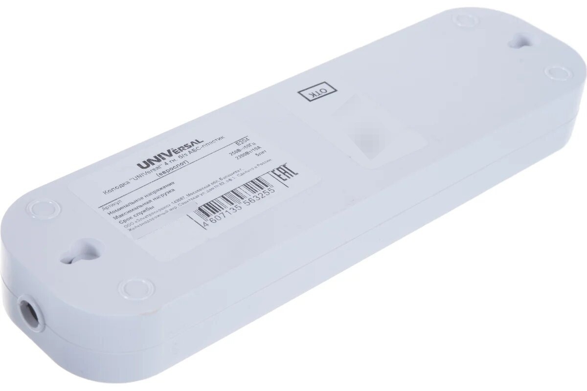 Колодка электрическая Universal / Универсал Е204 4 гнезда без заземления, пластиковый корпус, цвет белый, 220В, 10А, 2200Вт, IP20 / электрика
