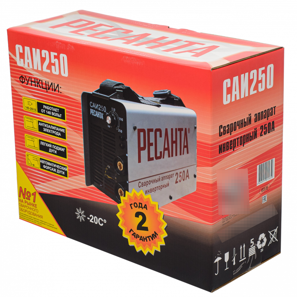 - Сварочный аппарат Ресанта САИ 250 65/6 инверторный, 10/250А, 9500Вт, 220В, IP21 - 1шт.