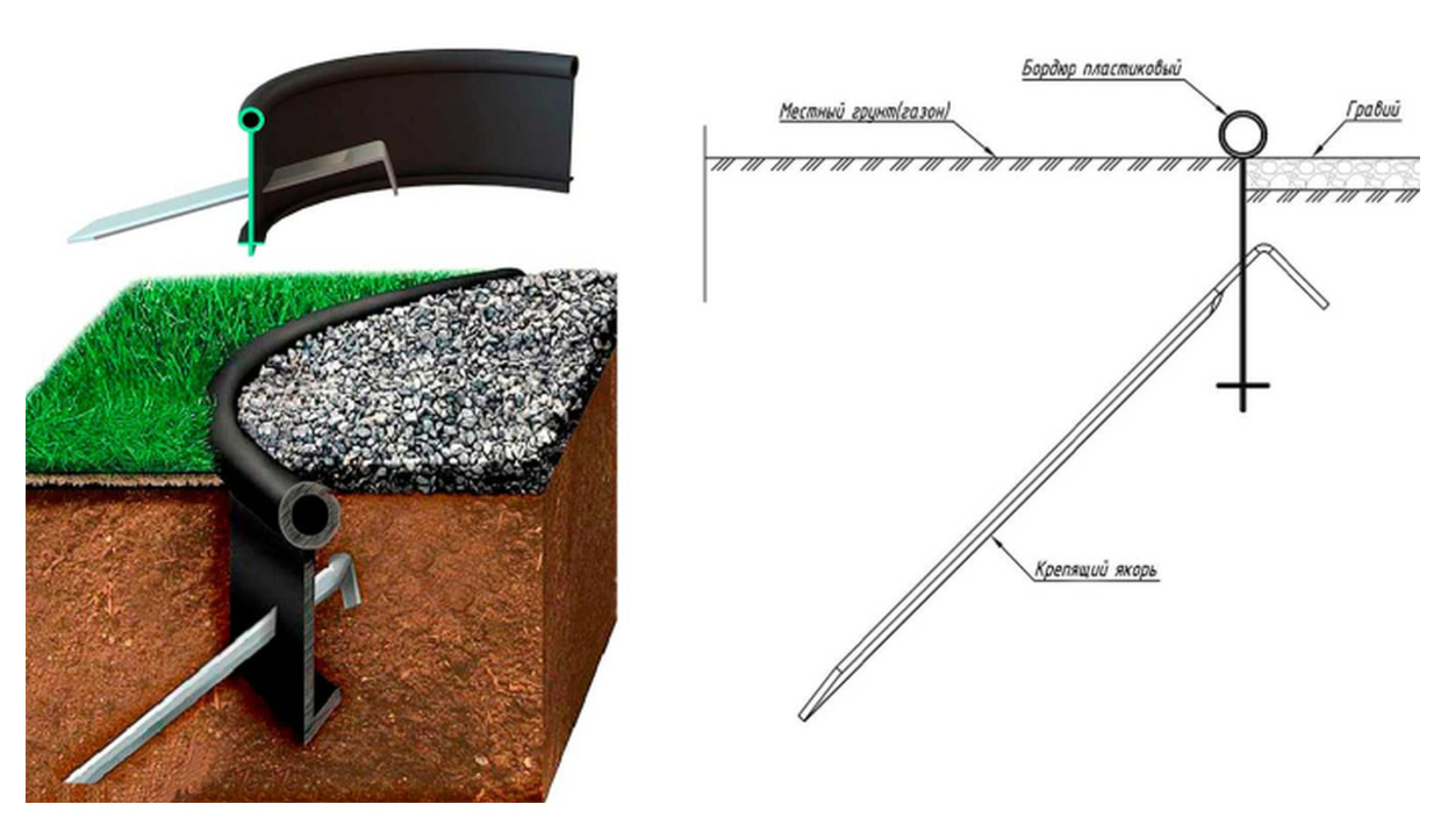Бордюр садовый изготовлен из пластика. Цвет — черный. Длина — 10 м. Высота 14 см. Он легко устанавливается и надежно фиксирует границы участка.