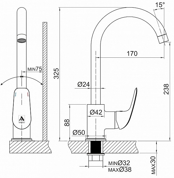 Смеситель ARGO IZEO для кухни, однорычажный - 1 шт.