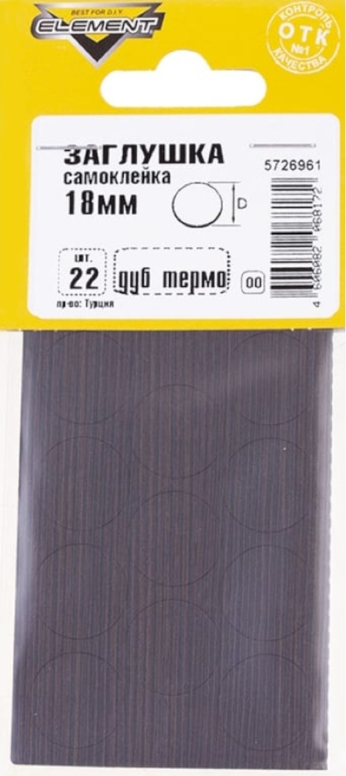 Заглушка декоративная Element / Элемент самоклейка для закрытия головок шурупов и винтов, из пленки, цвет орех антик, 18мм, 22шт. / строительство и ремонтАрт. 4132В наличии63 ₽/шт -