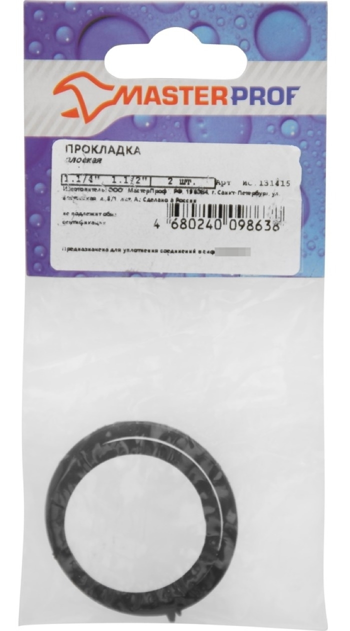 - Прокладка сантехническая MasterProf плоская для уплотнения соединения трубы с фитингами с накидными гайками, из резины, черная, диаметр 1 1/2", 1 1/4", 2шт. - 1 упаковка