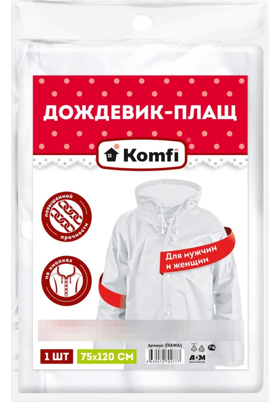 Неожиданный ливень или порывистый ветер больше не застанут вас врасплох! Дождевик Komfi создан для тех, кто ценит практичность и готов к любым капризам погоды. Легкая и прочная модель с капюшоном станет надежной защитой во время прогулок, походов или поездок на работу.