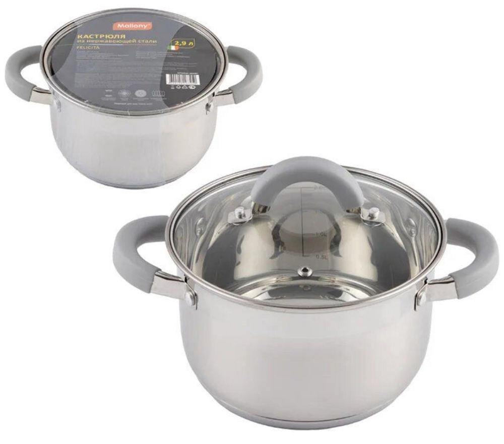— Объем кастрюли: 2,9 литра.