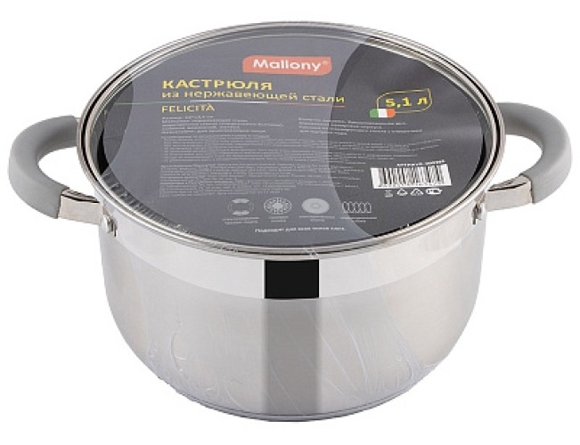Кастрюля Mallony / Маллони Felicita с крышкой, из нержавеющей стали, диаметром 22см, высотой 13.5см, объемом 5.1л / посуда для кухни