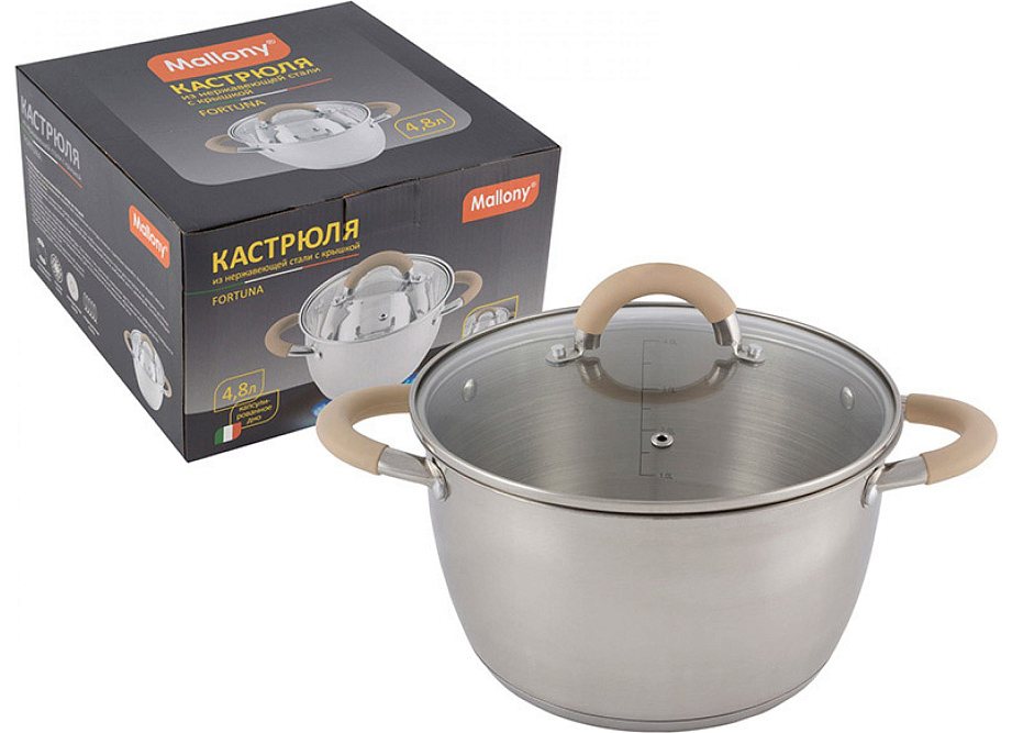 Кастрюля Mallony Fortuna объем 4.5 л из нержавеющей стали с крышкой матовый корпус ручки с силиконом 007220 предназначена для приготовления еды. Благодаря равномерному распределению температуры блюда хорошо прогреваются, что ускоряет готовку.