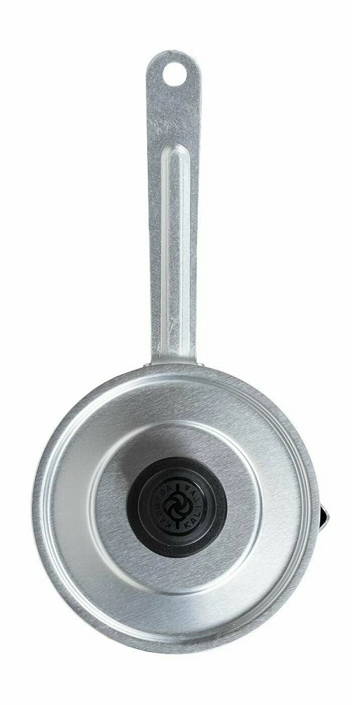 Изготовлена из пищевого алюминия без покрытия, идет в комплекте с металлической крышкой с пластиковым держателем и оснащена длинной пластиковой ручкой, защищающей руки от ожога.