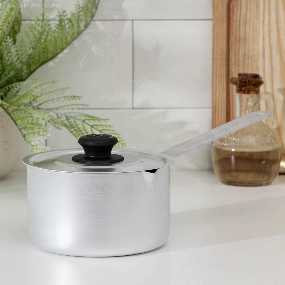люминиевая кастрюля-ковш Калитва 0,75 л, с металлической ручкой 14702 15834 подойдет для приготовления и подогрева блюд небольшого объема, например удобно сварить небольшую порцию детской каши, сделать быстрый завтрак, готовить соусы, крема, сиропы и т. д.