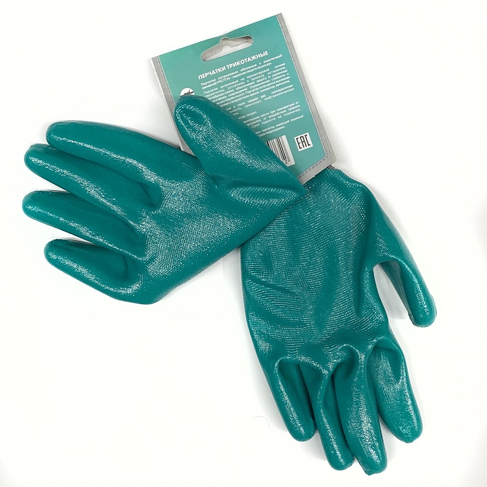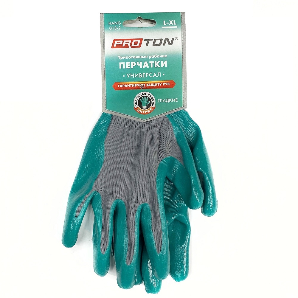 - Перчатки защитные PROTON Hang-013-2 Green Универсал трикотажные обливные гладкие, с эластичной манжетой, из нитрила и полиэстера, размер L-XL — 1 пара.