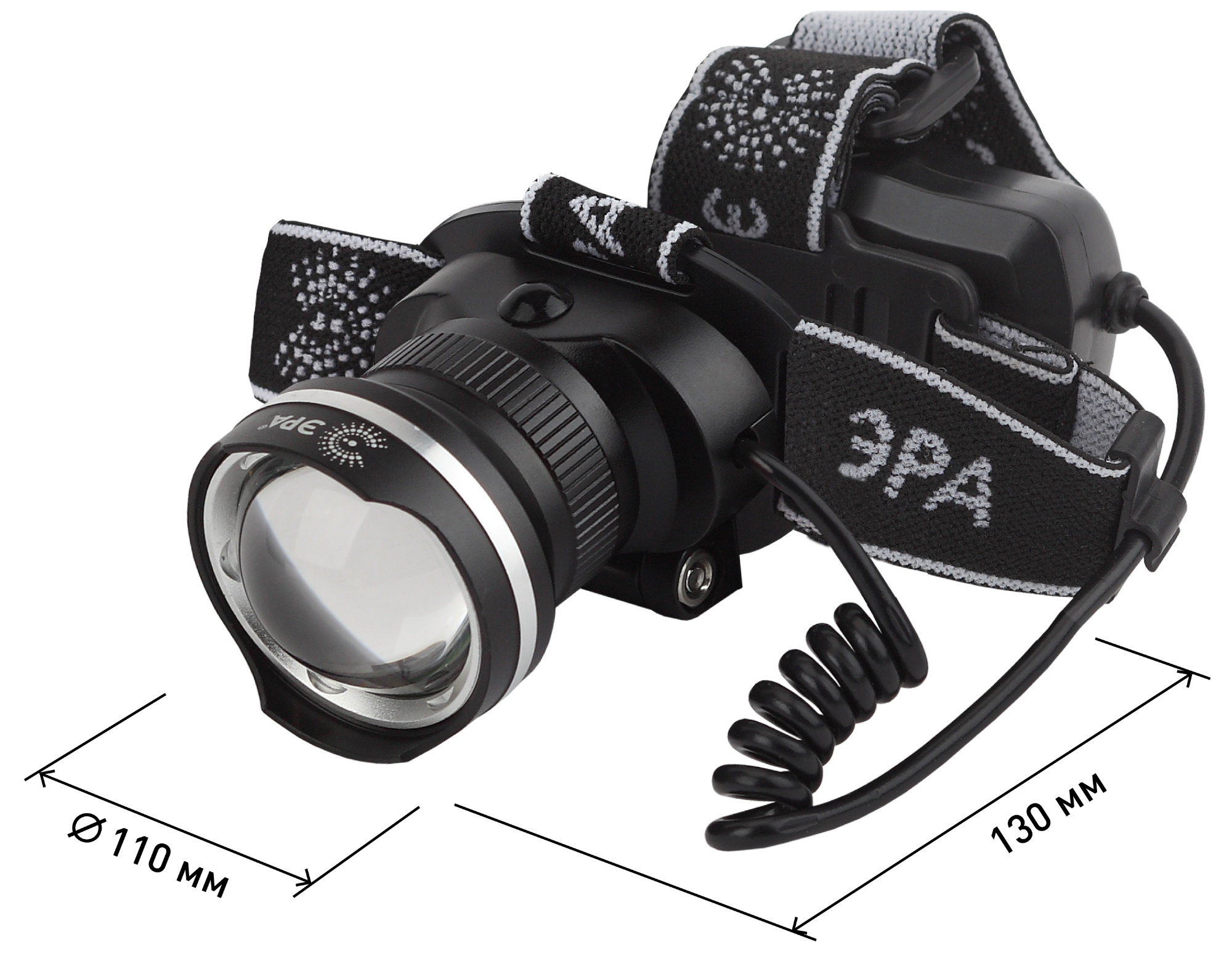 - Налобный фонарь Эра GA-806 светодиодный, аккумуляторный, мощный, 3 режима, регулируемая фокусировка луча, черный, 400/200лм, 170м, IP40, 5Вт — 1шт.