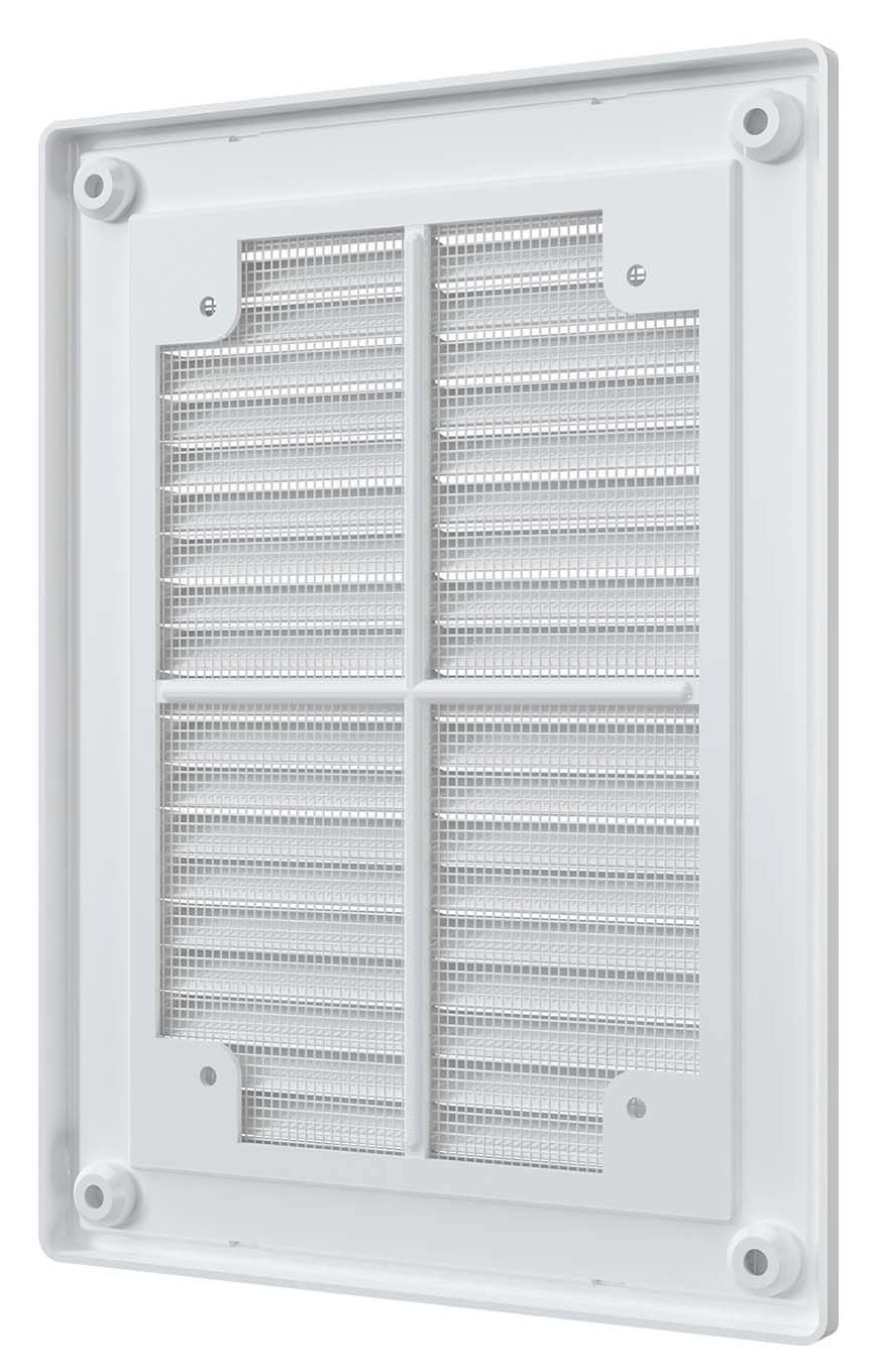 Вентиляционная решетка ЭРА Р состоит из двух частей: рамки и решетки с жалюзи. Решетка не крепится непосредственно к стене или к потолку, а вставляется в рамку, которая монтируется на поверхности. Это позволяет легко снимать изделие для обслуживания: необходимо достать решетку из рамки, а затем также легко вернуть на место. Решетка оснащена наклонными жалюзи, которые помогают скрыть вентиляционный выход, а также антимоскитной сеткой для защиты от насекомых. Решетки Р представлены также в коричневом, бежевом и черных цветах.