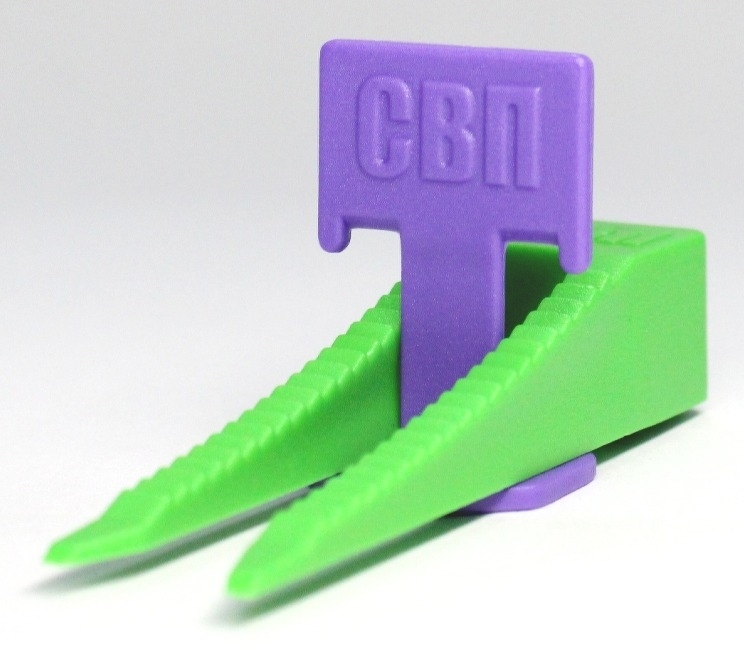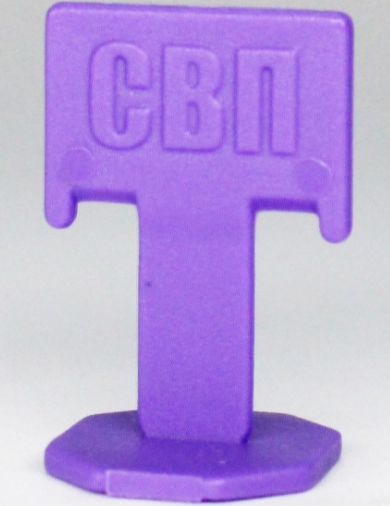 Зажим «Флажок». Фиолетовый пластик. Толщина основания 1.4 мм. Используется в комплекте с клином при укладке керамической плитки и керамогранита толщиной 4-14 мм. Предназначен для выравнивания поверхности по плоскости. Благодаря применению данных зажимов получается ровный шов 1.4 мм.