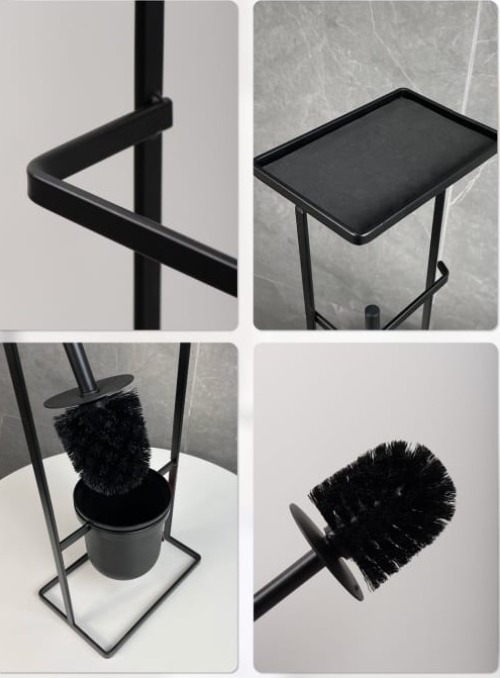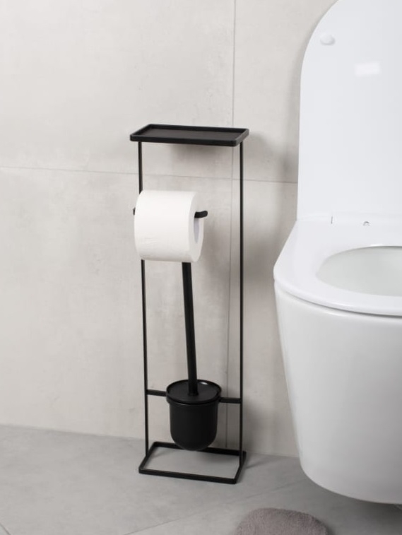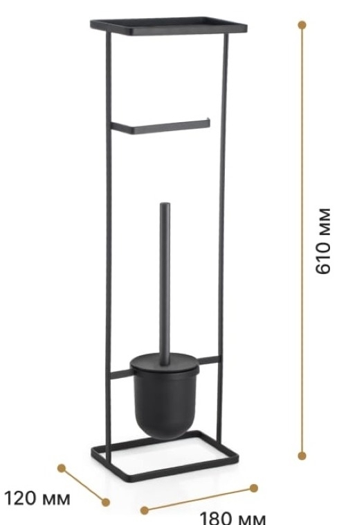 Стойка FORA ELEGANCE STYLE — это идеальное решение для вашей ванной комнаты. Элегантная и стильная черная стойка обладает держателем для туалетной бумаги, ершом и полкой, что делает её компактной и функциональной.