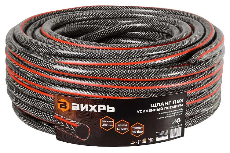 Шланг поливочный ВИХРЬ армированный усиленный премиум, из ПВХ, диаметр 3/4дюйма, 50м / все для сада