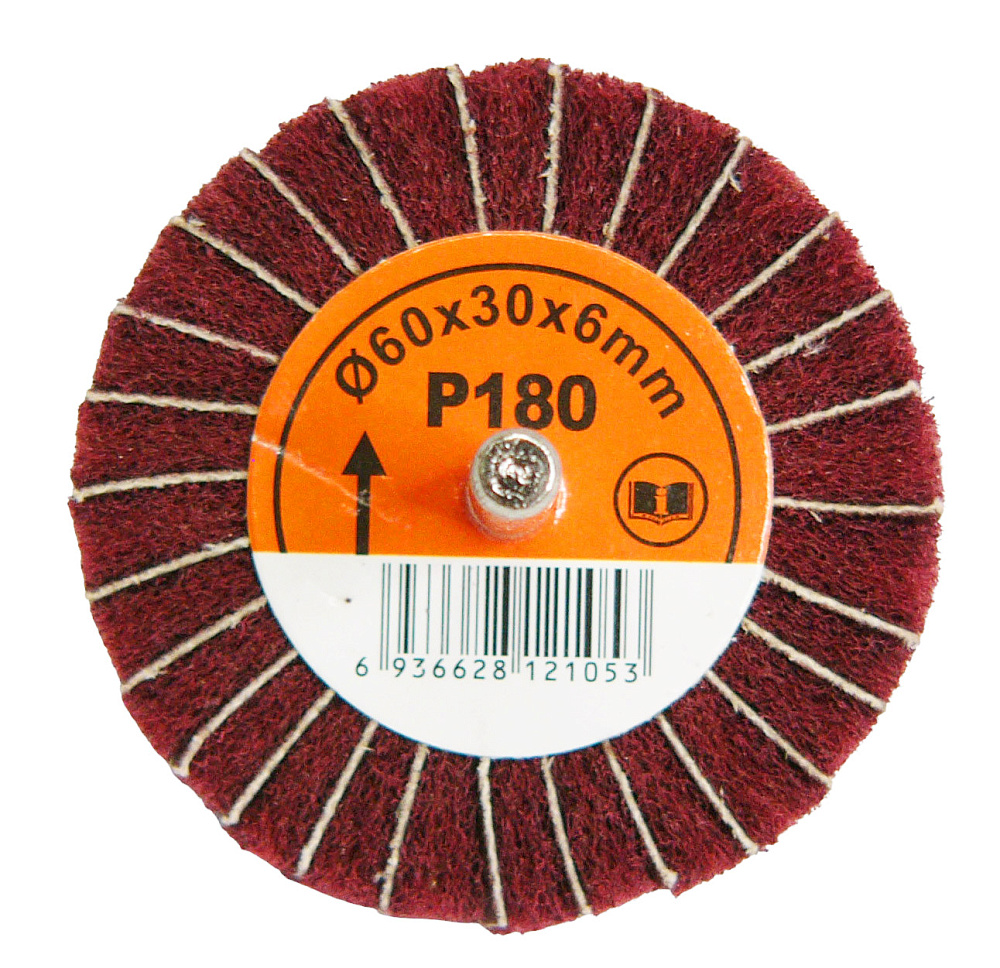 Головка шлифовальная ORIENTCAFT / Ориенткрафт лепестковая, из нетканого материала, диаметр 60мм, толщина 30мм, зернистость P180 / оснастка