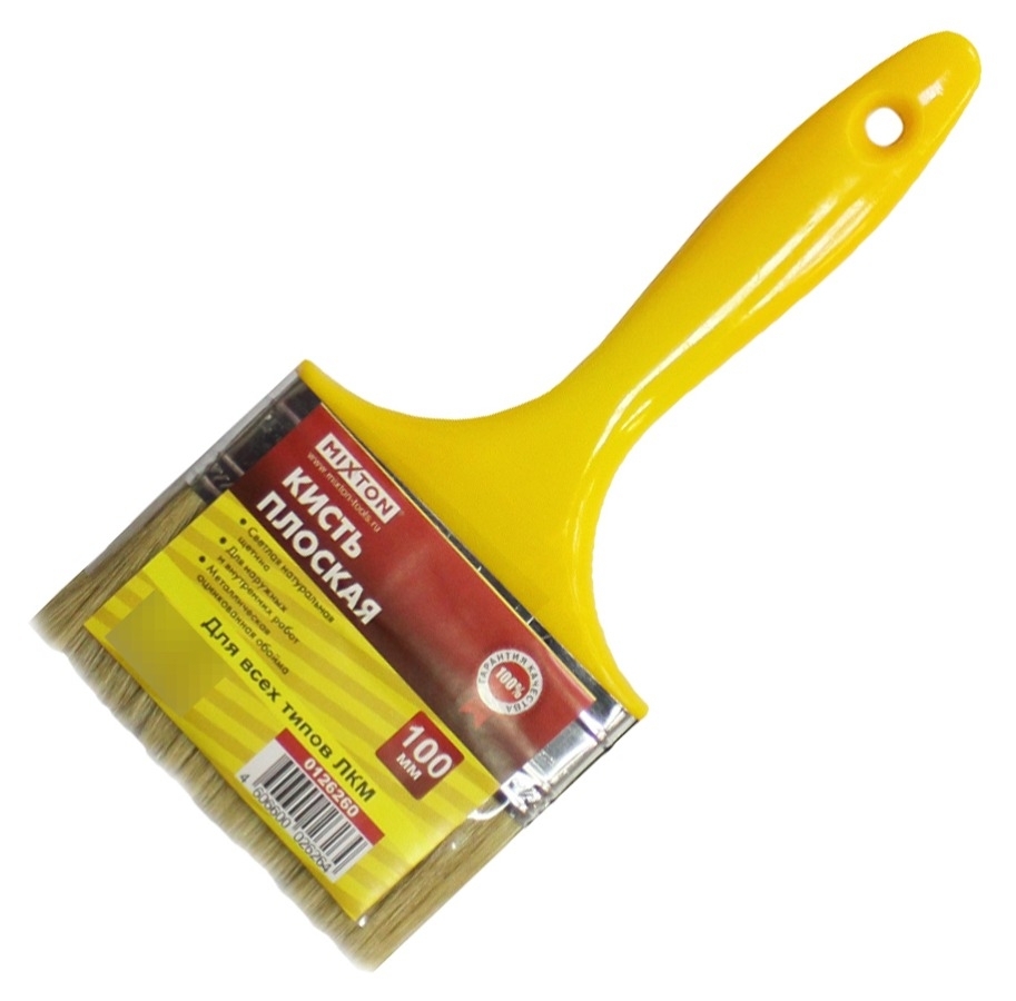 Кисть малярная MIXTON / Микстон Стандарт плоская, с натуральной светлой щетиной, 100мм / малярные и отделочные инструменты