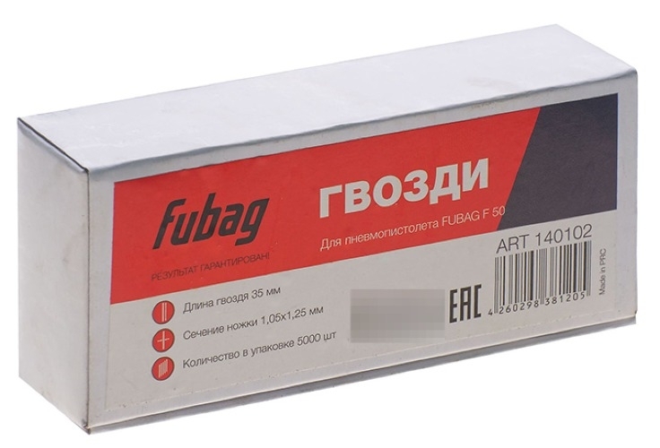 Гвозди Fubag для F50 (1.05х1.25, 35 мм, 5000 шт) (140102). Подходят для степлеров всех производителей работающих с данным типом. Подходят для моделей FUBAG: пневмостеплер гвоздезабивной FUBAG F50. Идеально подойдходят для монтажа вагонки, отделочных материалов, элементов декора, сайдинга, блок-хауса.