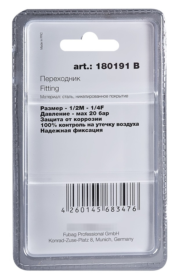 Переходник Fubag / Фубаг для пневмоинструмента, из стали, наружная резьба 1/2дюйма, внутренняя 1/4дюйма / оснастка