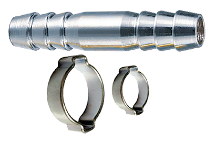 Переходник 8 мм елочка на елочку с двумя обжимными кольцами 13 мм.