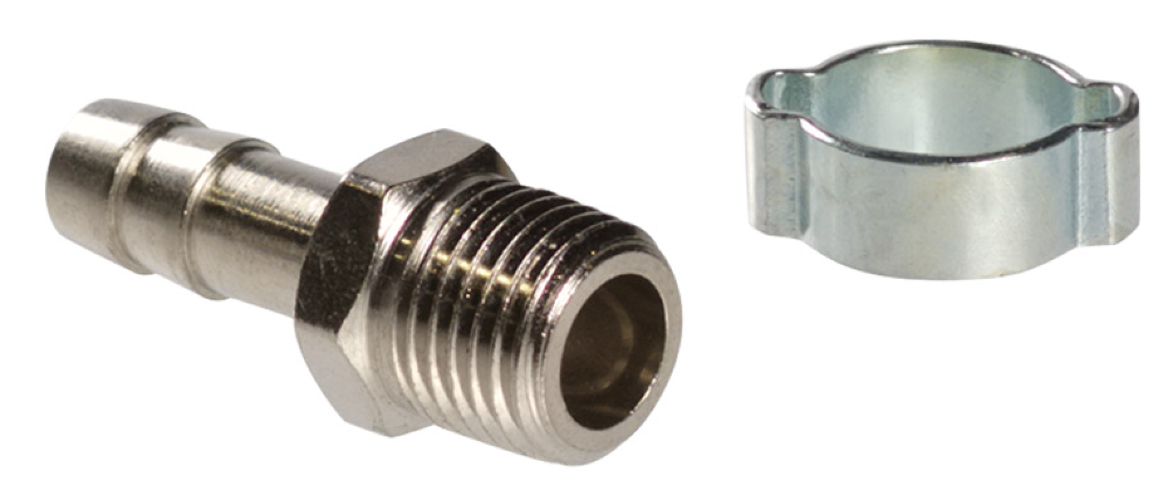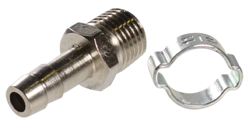 Переходник ¼"M наружняя на елочку 8 мм с обжимным кольцом 13 мм.
