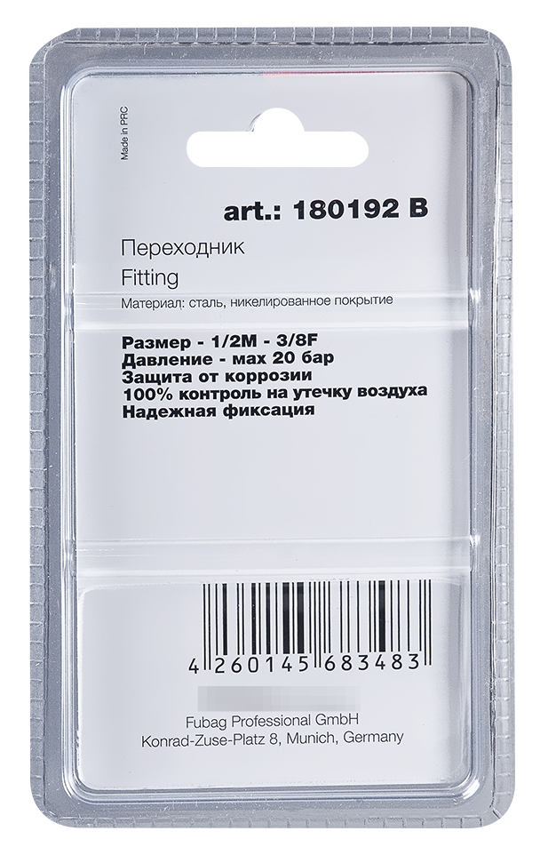 Переходник пневматический ½"M / 3/8"F Fubag (арт. 180192 B). Переходник предназначен для соединения выхода компрессора со шлангом пневмоинструмента. Переход резьбы: внешняя ½» (папа) — внутренняя 3/8» (мама). Поставляется в блистере.