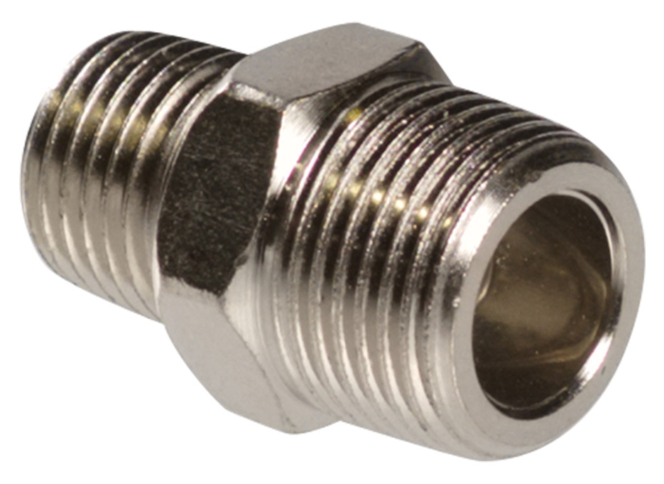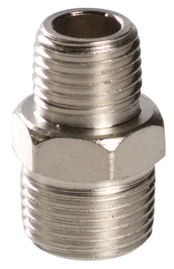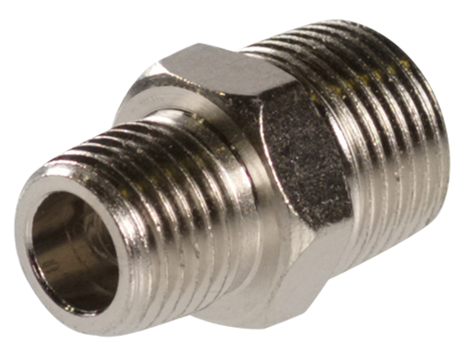 Переходник предназначен для соединения выхода компрессора со шлангом пневмоинструмента. Переход резьбы: внешняя ¼"(папа) — внешняя 3/8» (папа). Поставляется в блистере.