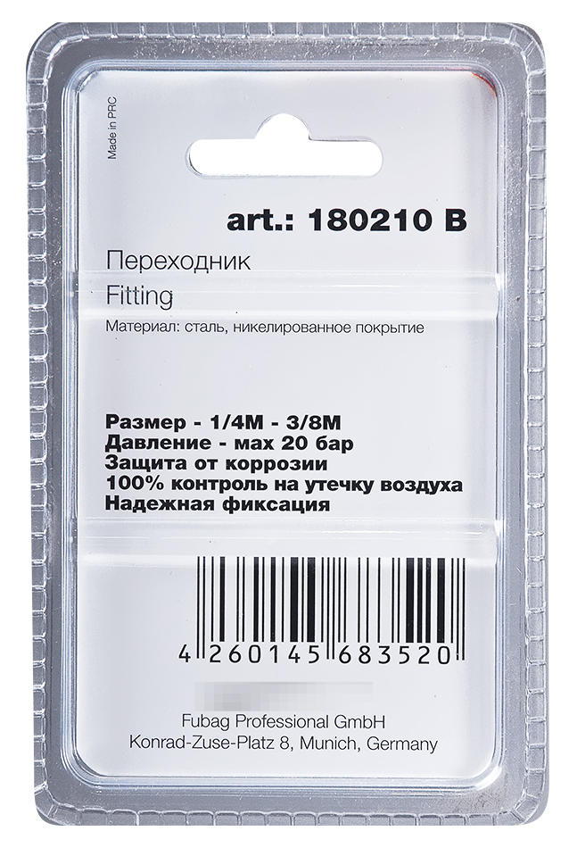 Переходник пневматический ¼"М / 3/8"М Fubag (арт. 180210 B).