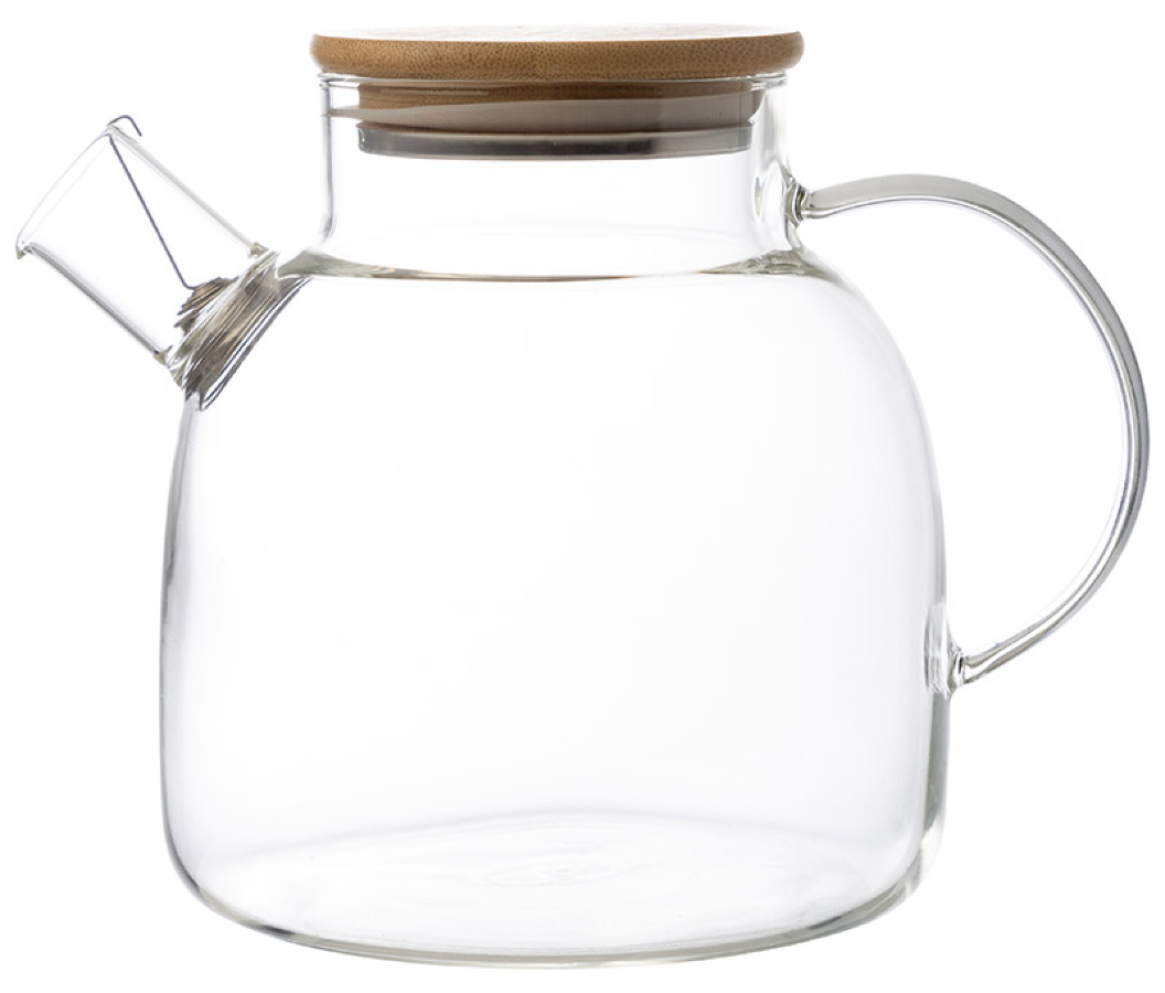 Чайник заварочный Mallony / Маллони Foresta Di Bambu с фильтром-пружинкой и бамбуковой крышкой, стеклянный, прозрачный, 1.5л / товары для дома