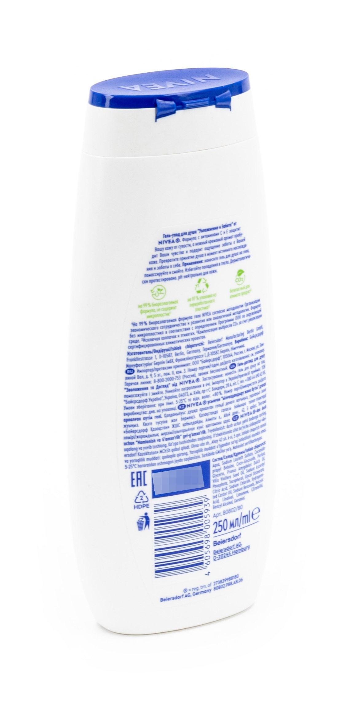 Выглядеть приятно для общества человеку помогают множество различных средств, в том числе и гигиенических. К ним относится и гель-уход для душа Nivea Увлажнение и Забота с витаминами С и Е и маслом миндаля.