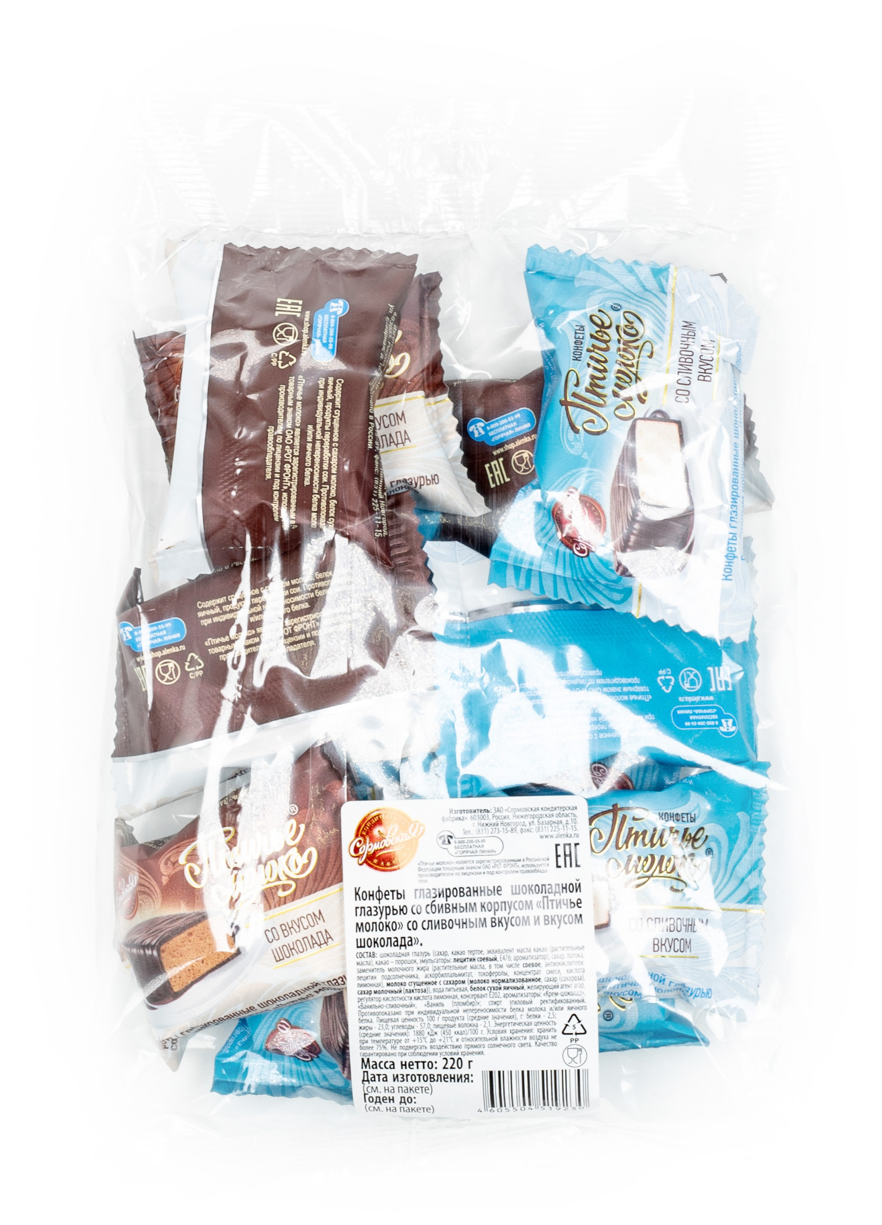 Конфеты Сормовская Кондитерская Фабрика Птичье молоко — это квадратики сливочно-ванильного суфле, покрытые темной шоколадной глазурью. Знакомый с детства нежный вкус сливочного пломбира, мягкая, как облако, текстура суфле и хрустящая глазурь, на фоне которой начинка кажется еще более нежной. Мягкие, воздушные и легкие конфеты Птичье молоко дарят настоящее наслаждение, очаровывая своей мягкой, кремовой текстурой и безупречными вкусовыми характеристиками!