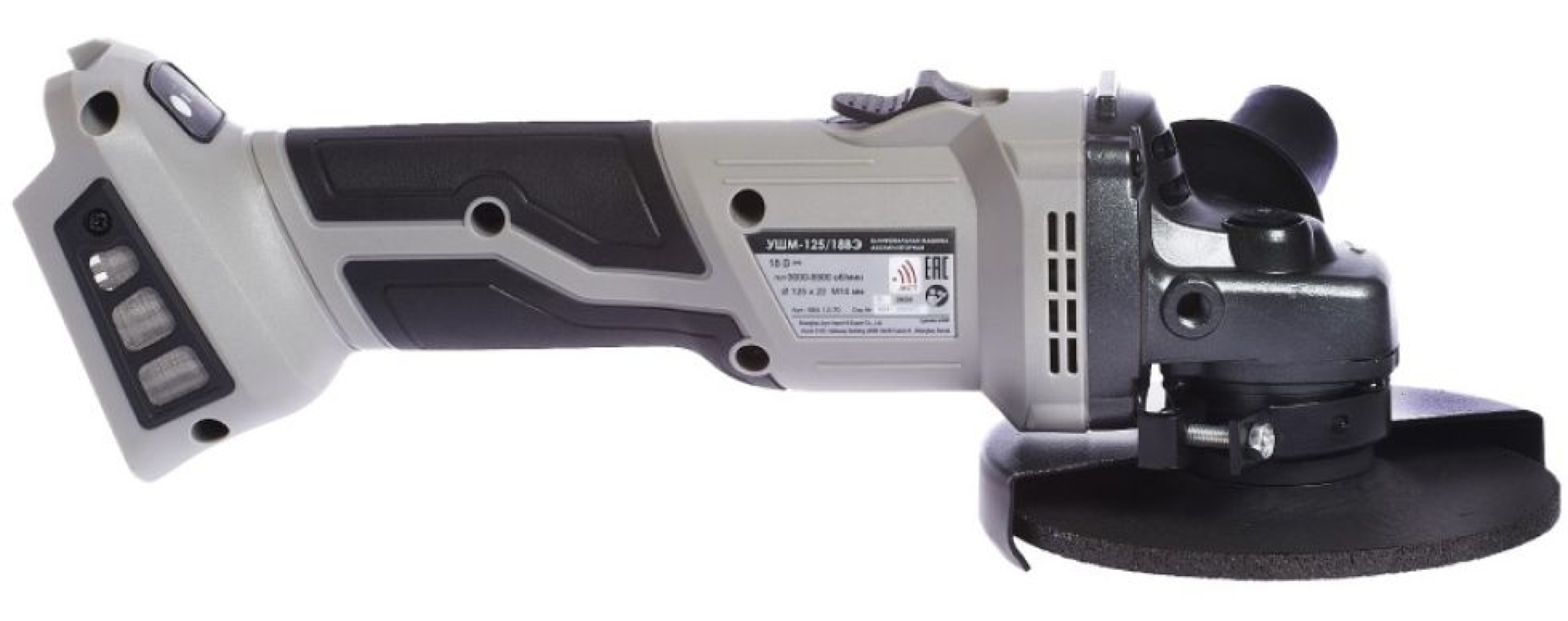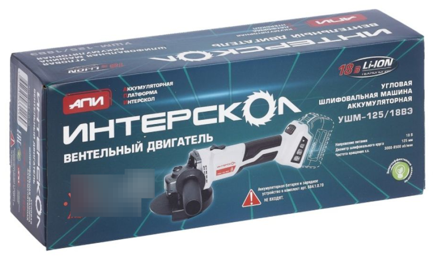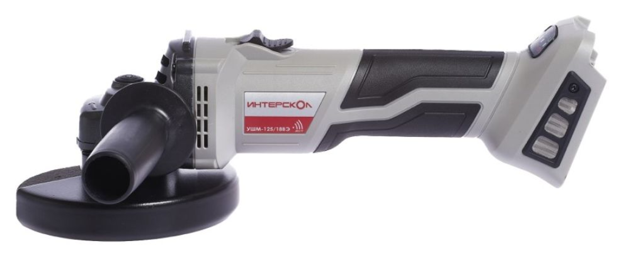 Шлифмашина угловая Интерскол УШМ-125/18ВЭ профессиональная, аккумуляторная, с регулировкой оборотов, посадочный диаметр 22.2мм, М14, диск 125мм, 18В, 3000-8500об/мин / болгарка