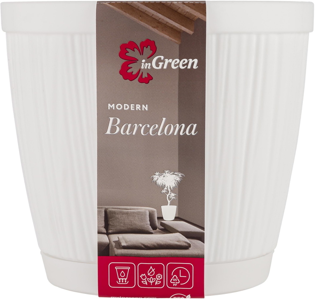 Горшок для цветов INGREEN / Ингрин Barcelona c дренажной сеткой и поддоном, из пластика, белый, 6.5л / дом и сад